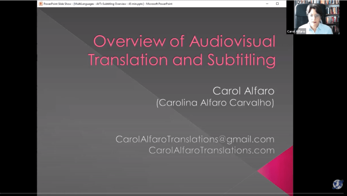 Happy to share a talk I gave last week for the Multi-Languages Webinar Series: Thriving In Times of Crisis. I gave an overview of audiovisual translation and an introduction to subtitling.